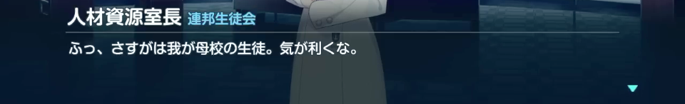 人材資源室長のセリフより、連邦生徒会に「母校」の概念がある事が明らかになった。