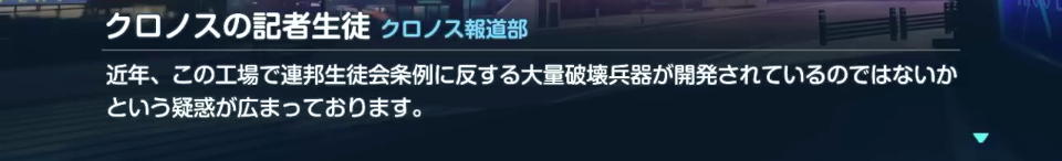 列車のハイジャックが日常的な事件という訳の分からない報告を横においても、生ける古代文明が突然廃墟から這い出して生徒を襲ったり、ちょっと歩けばブラックマーケットがあったり、学校に行けない生徒が集まるスラム街がそこらにあったり……治安維持の筆頭部署である防衛室のトップが現状を把握できていなかったのは、何という皮肉だろうか。